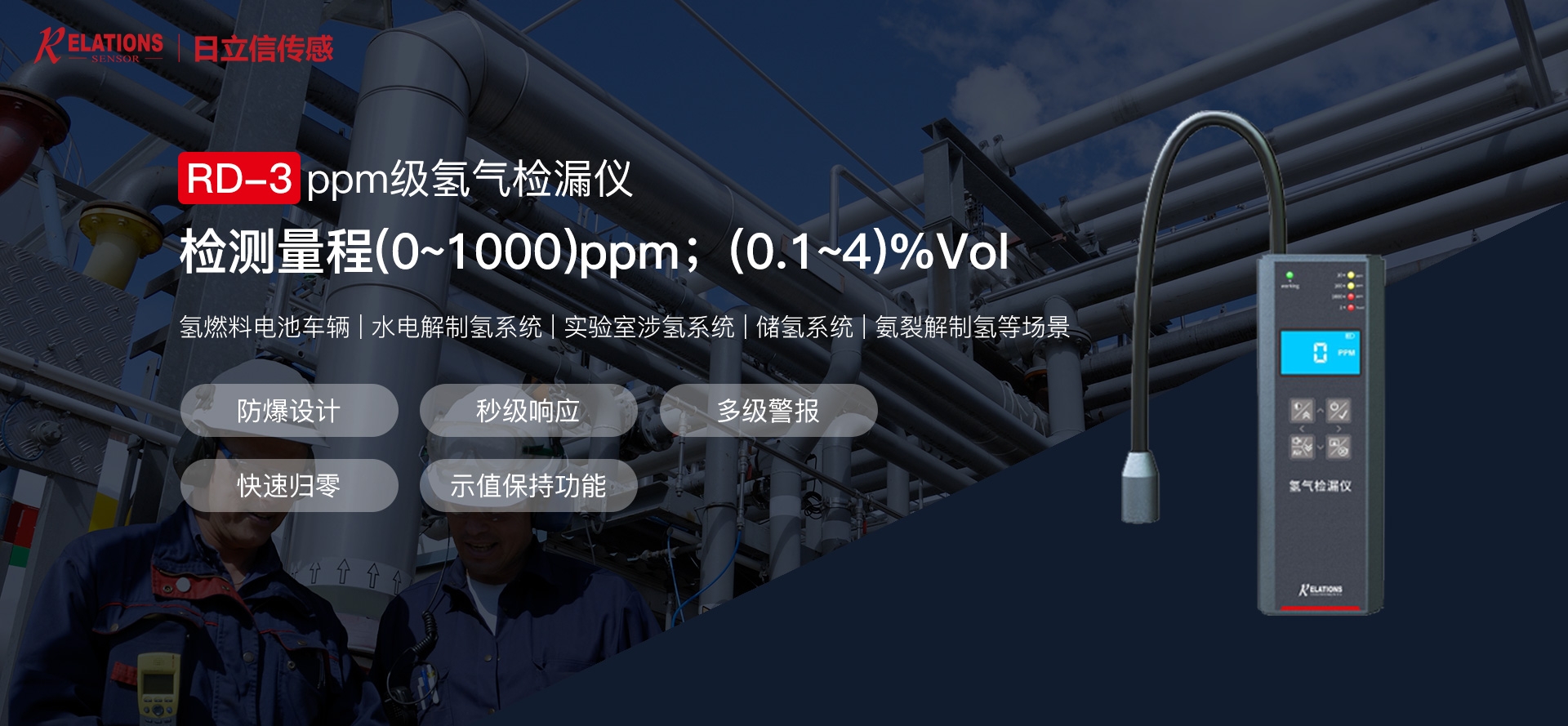 電解水、天然氣、氫分裂制氫,輸氫管道、氫氣置換,制氫站、加氫機(jī)、卸氣柱、撬裝站、氫燃料電池汽車及系統(tǒng)測試臺架、熱電聯(lián)供、氫滲氫實(shí)驗(yàn)室、涉氫生產(chǎn)廠房、氫氣氣瓶間等場合中的氫氣濃度、純度、濕度檢測。